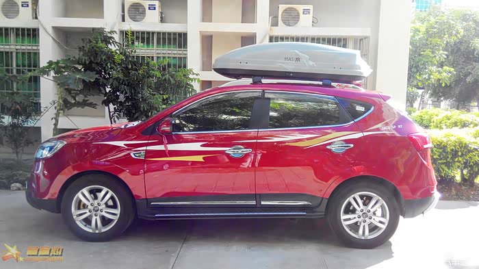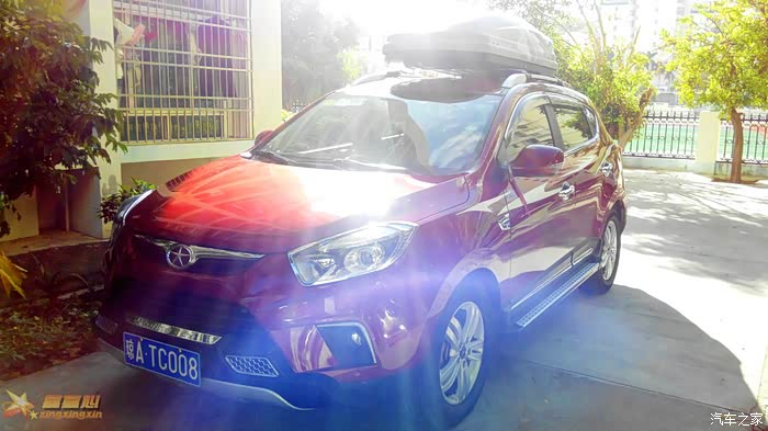 出发前要检查一下车,把原来车顶行李架换成行李箱,当然有风阻肯定油耗上去了。