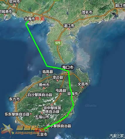 这是第一天的量程,下午两点三亚出发。从船从北海走,不经海安。