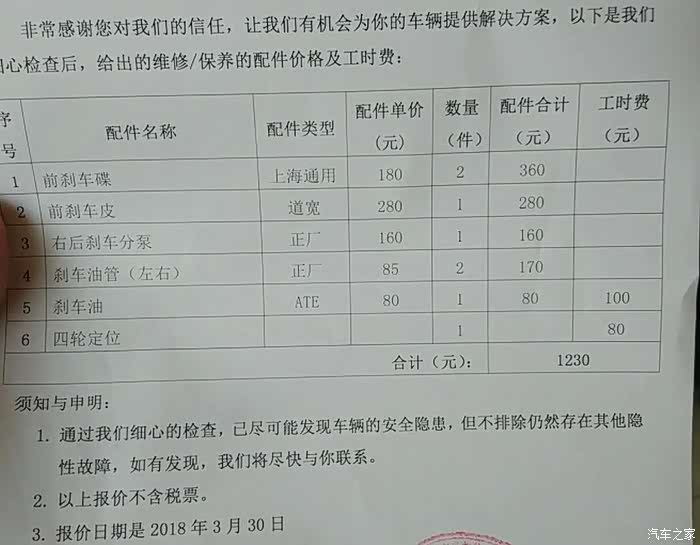 通过这次刹车系统大修,我发现4S其实也是有价值的,起码几十项检查,可以提前发现问题。我一直都是自己做保养,自己买东西,然后去汽修店(不是这次朋友的店)维修,人家也只收几十块工时费,该做做,不会主动检查。