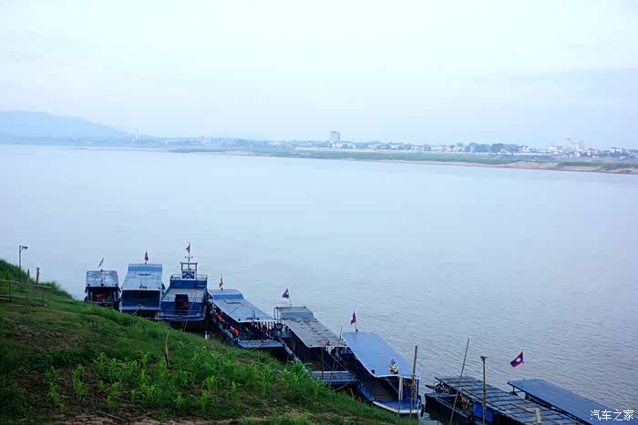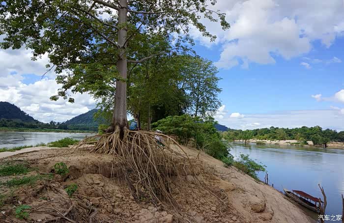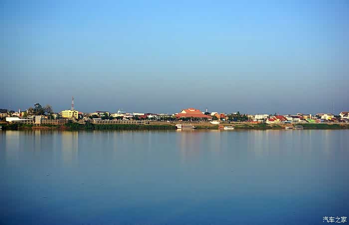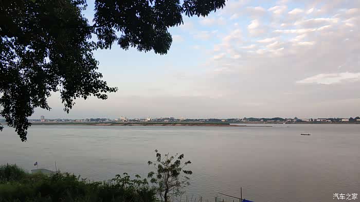 看老挝侧的湄公河景观。