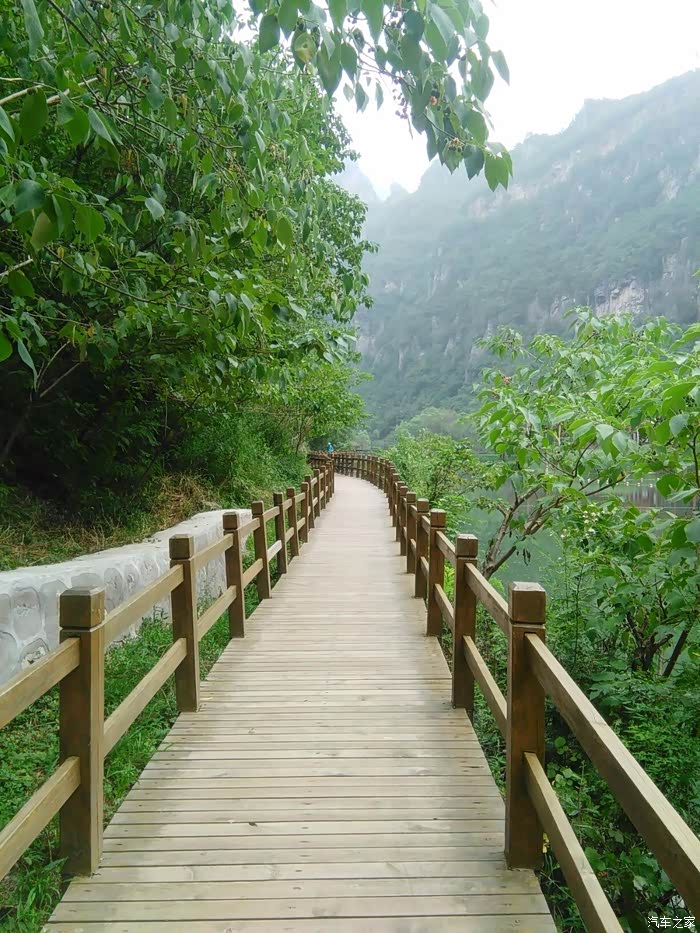 山边修了一道长长的木桥,如果胆小的话,那就