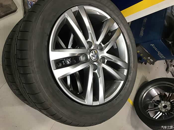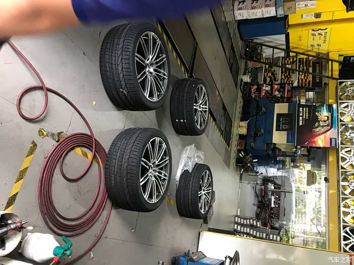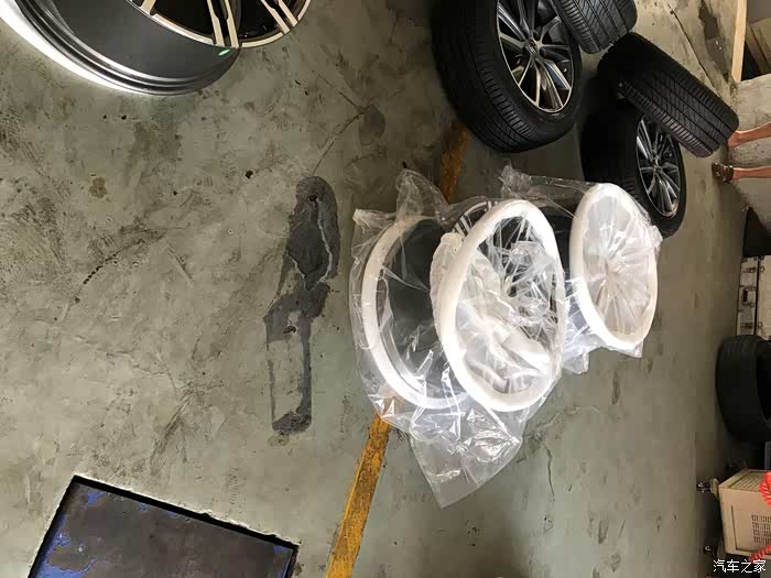 车还没到,轮毂和轮胎就到了,先组装起来,后来为了安装胎压监测,又卸下扒开了一次,白花了300大洋