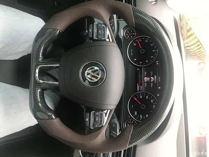 碳纤维方向盘配真皮打孔,手感谁用谁知道