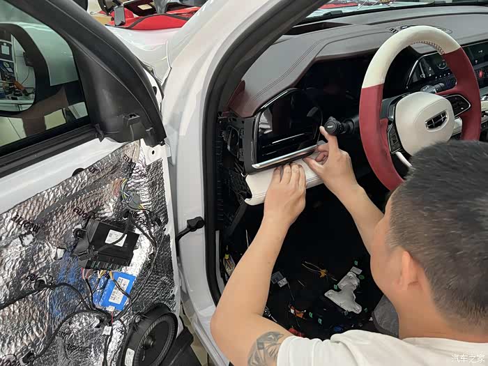 施工作业开始了,这是星越L第二次拆门板了,师傅施工还是非常小心的,大家施工的时候也要注意,不然很容易损坏卡子