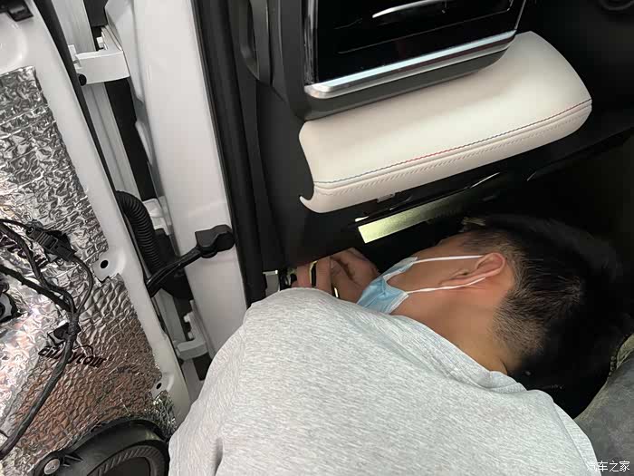 副驾驶的施工要特别仔细一点,因为上面的大屏幕还是比较贵的