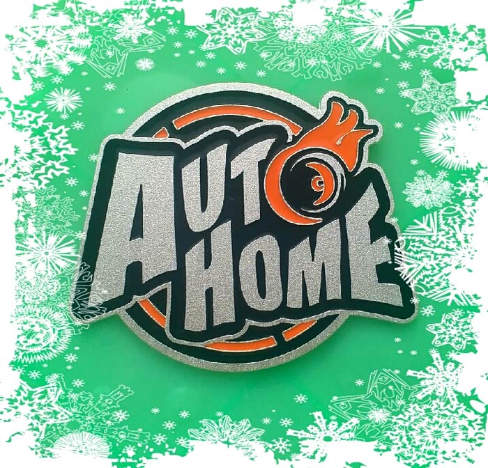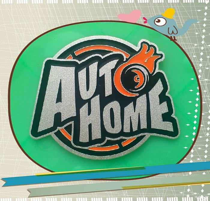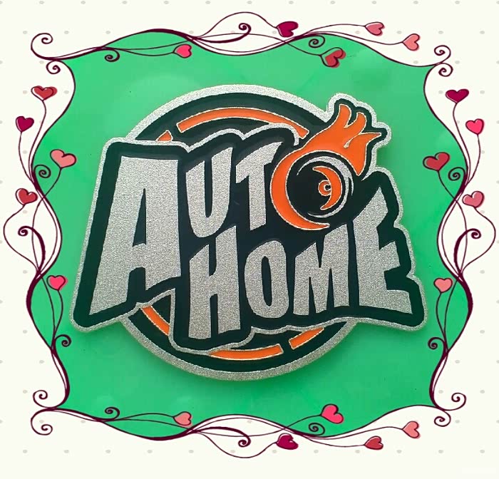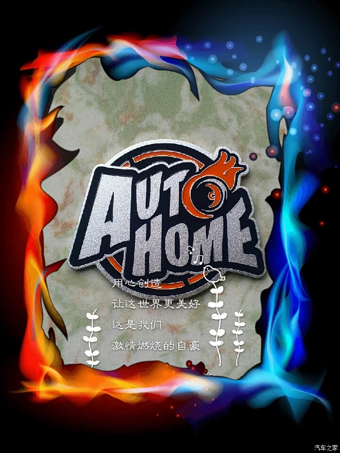 新版酷炫车标主题为汽车之家英文“AUTHOME”,车轮滚滚、火焰四射代表着速度与激情,红色的火焰包围着园的造型象征着既往开来的滚滚车轮,上下的红色代表着汽车之家的辛路历程。