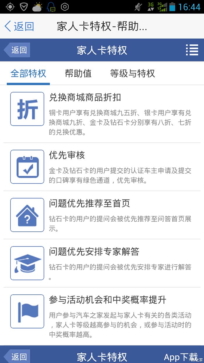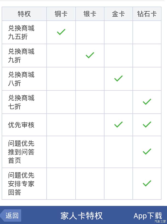 并且当你获得了家人卡之后,就能看到自己当前都能享受到哪些特权了。 每个等级的家人卡都享有不同的特权,家人卡等级越高,享受的特权越多,特权给你带来极大的方便和身心的感受。在这次上线中家家为你们挑选了兑换商城7折起的折扣特权、优先审核的特权、问题优先被推荐到首页的特权、还有优先安排专家解答的特权。