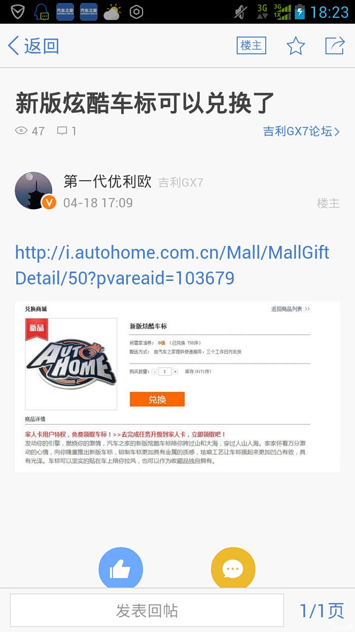 彤彤在GX7论坛上看到的链 接,获得铜卡以上的用户获得资格后系统自动锁定用户,打开链接就可以免费兑换了。
