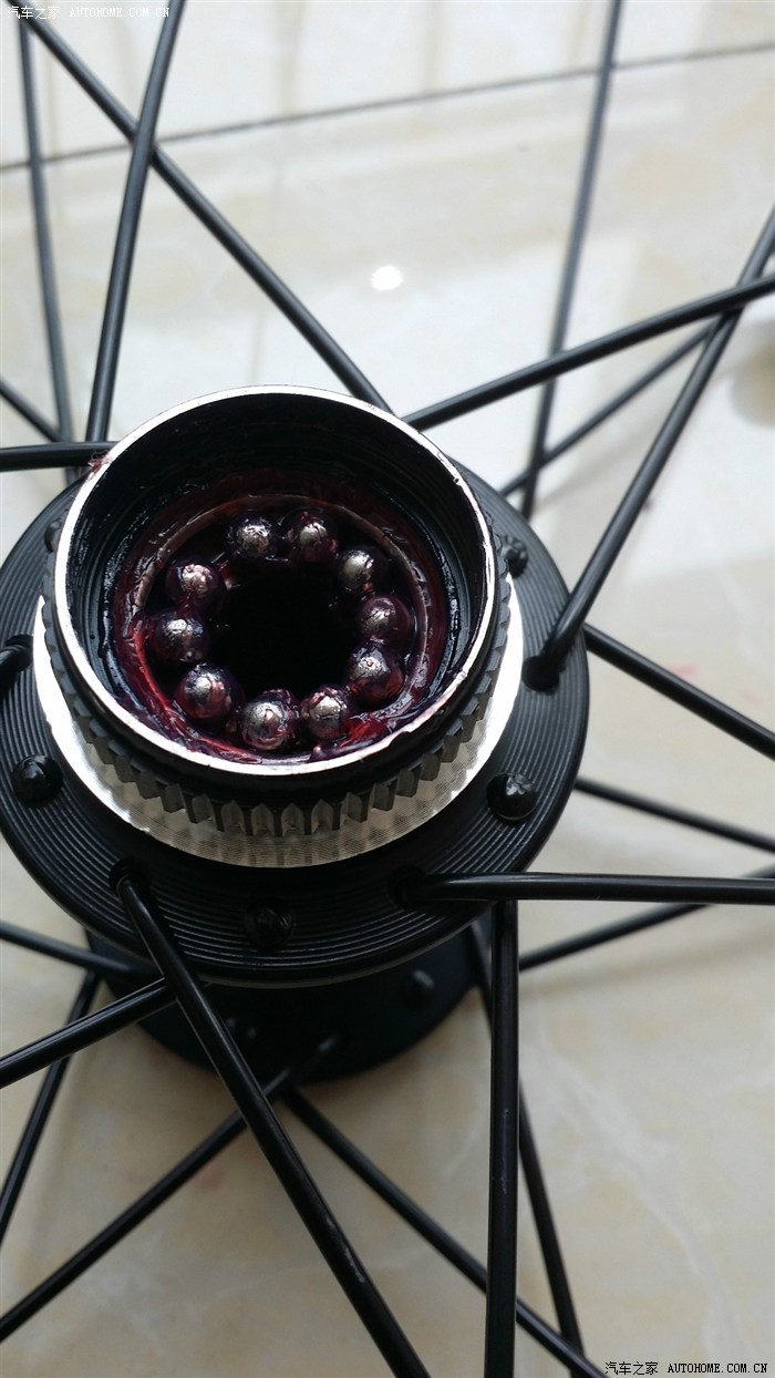 撬开轴盖后均匀涂抹黄油和摆放珠子,黄油不宜过多,否则轮组润度变差,(由于上次后轮抹的较多导致重新拆开清洗