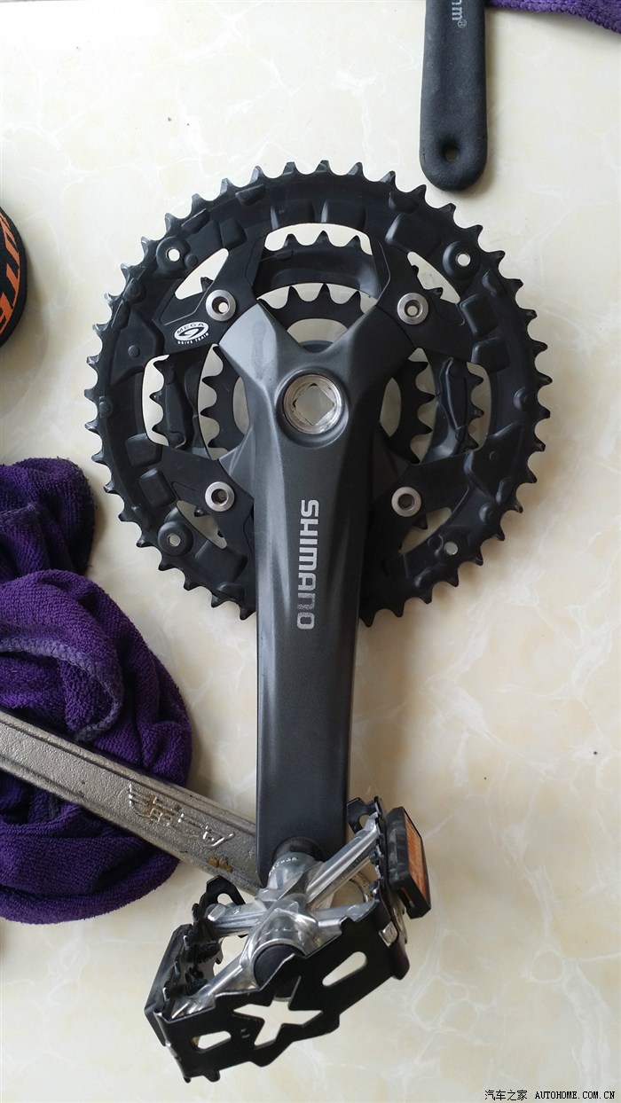 拆掉锁紧螺丝后用拉码即可拆下压盘和对侧脚蹬。