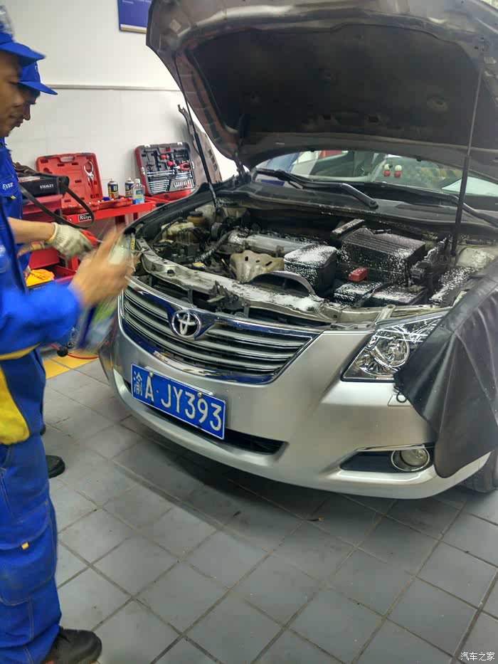 知道这是在干什么吗?对,没错,免费洗了一下发动机舱!
