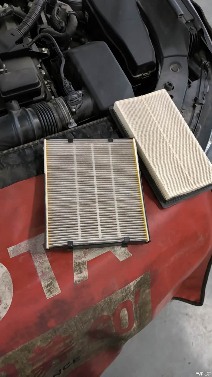 师傅把空调滤芯和空气滤芯拿出来看看跟我说不用更换,帮我把灰尘冲冲就行了。
