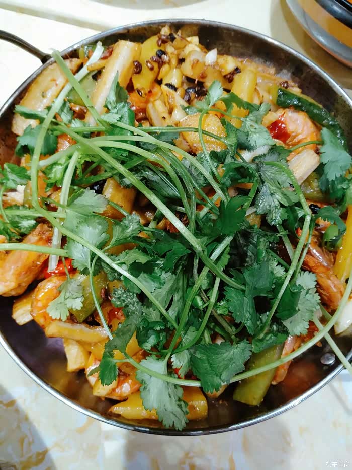 干锅香辣虾,早上起早买的活蹦乱跳的虾。在外面酒店可吃不到呢,人家可不会用活虾给你做香辣的
