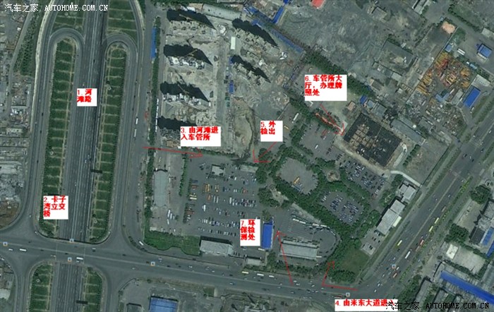 下一步去图6(下图)位置,车辆管理所办证大厅(叫这个名字,是今年十一才启用的。在图片中显示的是一片建筑物,大家可以再现场找一找,挺好找的)。