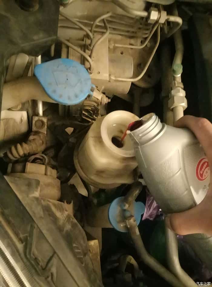 再次上车转动方向盘,一定要慢,多观察助力油壶里的油,别空了,瓶子里又排出新旧混合的助力油。