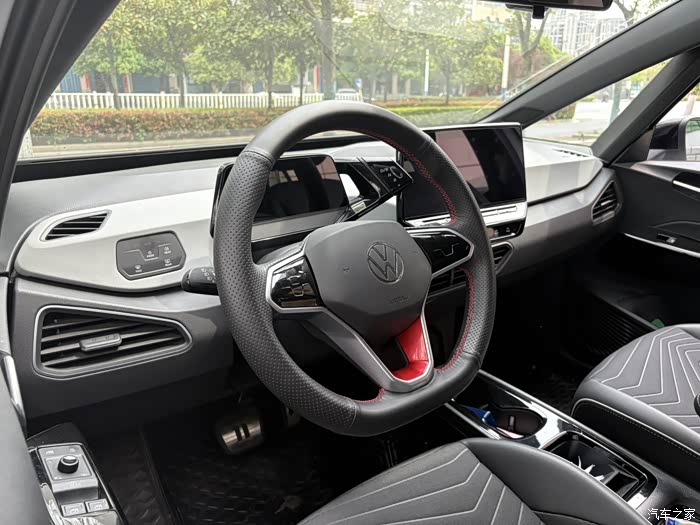 说实话我第一次坐进ID.3的车内的时候感觉落差非常大,好不容易外形上有了这么出彩的设计内饰却拖了后腿,一如既往的大众熟悉风格(PS:我是大众老车主),让人感觉很无聊呆板,门板上、中控台哪里摸起来基本上都是硬邦邦的(听说24款都升级了软包老车主哭晕在厕所),唯一能拿得出手的可能就是这个黑色的顶棚设计,看起来比较运动,当然高配的白包也是可以的,但是最低配是能够选装的,这一点也必须吐槽一下。最羡慕的还是25款的车内饰实在是升级太多了,像中控扶手箱、大面积软包等等,对比一下我这个23款感觉我这就是一个毛坯房,有点后悔买早了。