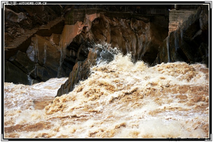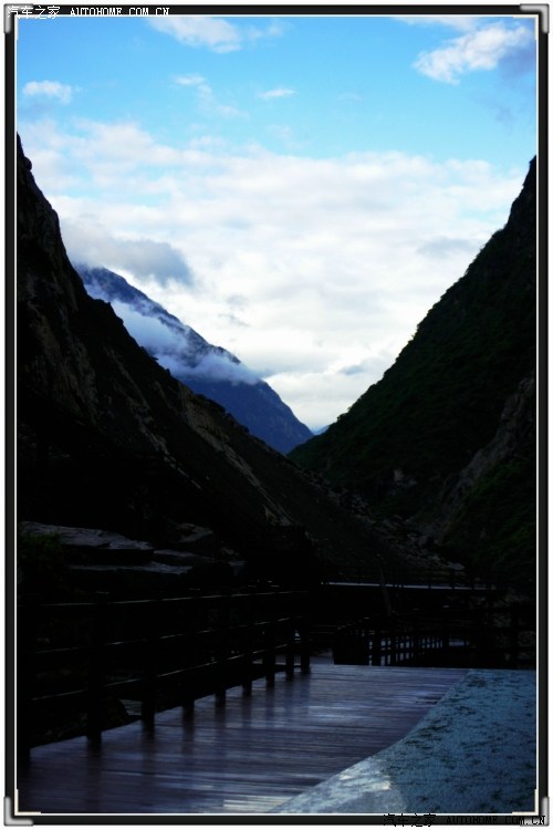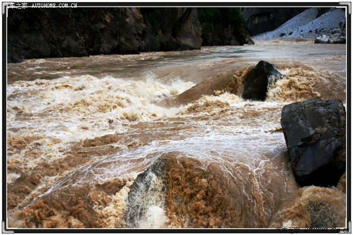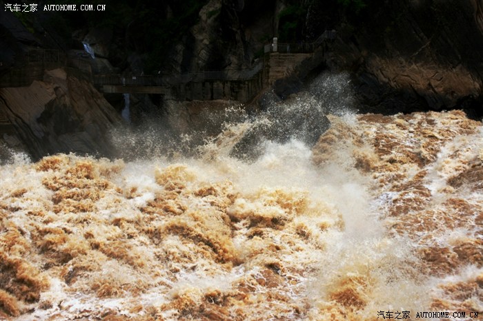 到达虎跳峡时,已经是下午5点多了,(虎跳峡景区门票50元/人)我们一家三口是最后进入景区的游客,刚到峡谷谷底,保安过来说:“我们景区人员全部要下班了,你们自己注意安全”,呵呵。99年时到过虎跳峡,这次重游发现变化真大,景区悬空搭起一座木板铺成的道路,其中有一部分是玻璃路面,人走在上面,江水在脚下咆哮,这种视觉、听觉的冲击让人感到震颤!江水特别猛,江心的那块巨石时常被咆哮的江水没过。
