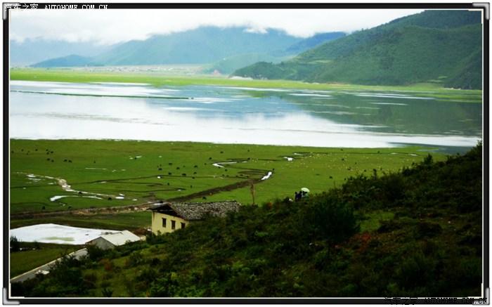 距离香格里拉县10余公里的地方,路边一个小门望进去,草甸、牛群、湖泊、远山、薄雾,又一幅美丽的中国山水画,打听方知,那是香格里拉著名景点——纳帕海。可惜天公不作美,开始下雨,在门外匆匆照几张照片,继续赶路。