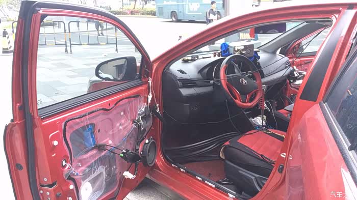 最后完工,敲门和关门声比之前厚重不少。上车,开大音量,调节一下主机里的均衡器,播放音效杠杠的,共振现象减少了。