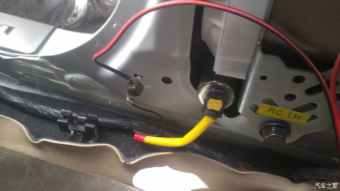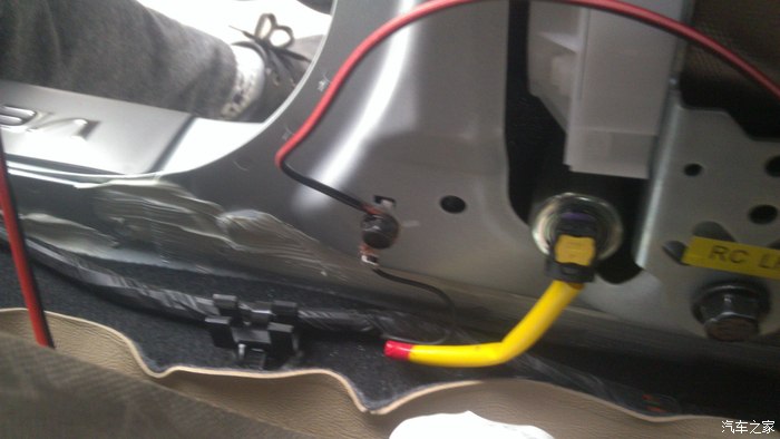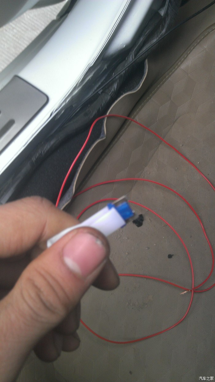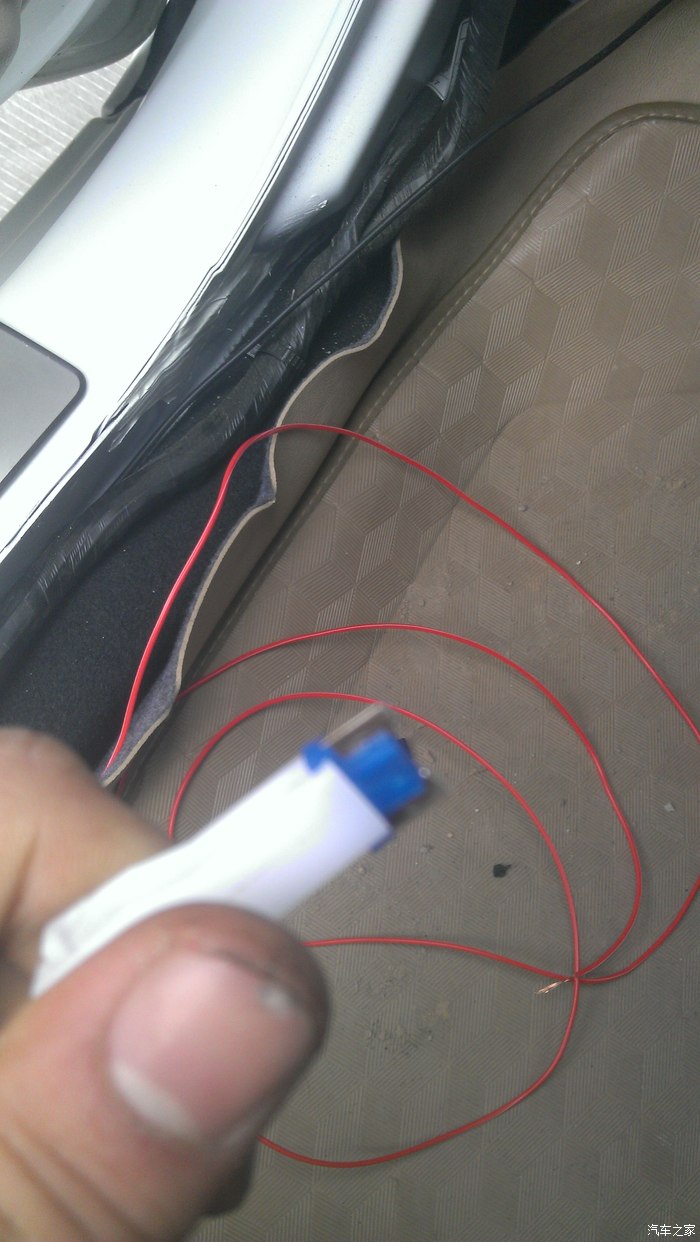 红色的是正极,接B柱里面棕色的开锁线(想按两次关锁的就接回灰色的线),夜生活2015大哥是在前门踏板下面接的有三根棕色的,排除最细的和最粗的,第二粗的那根就是开锁线。我的是14款的,打开后发现里面有4跟棕色的,瞬间凌乱了,还是在B柱吧