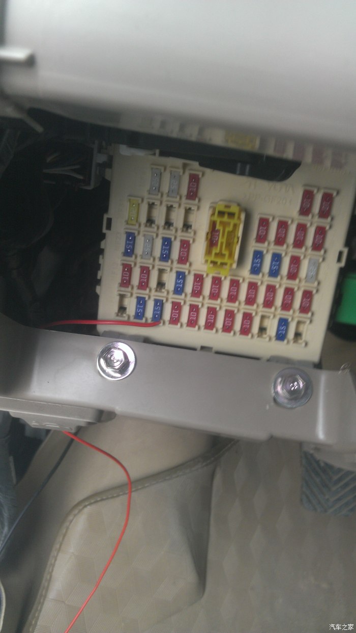 剩下一根线,直接扯到保险盒那里,打开保险盒,看图,点烟器那个,拔出来(拔不出来的话,发动机仓里面那个保险丝盒里有专用小夹子,无意发现的,北京现代还挺细心),就是那个小的,白色的