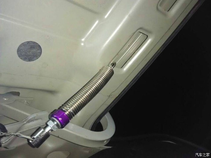 首先是弹簧安装,把网上买的拉环去掉,用铁丝捆绑就行了,注意原车那个黑的(不知道叫啥),两边都要绑,否则盖住的时候会滑落