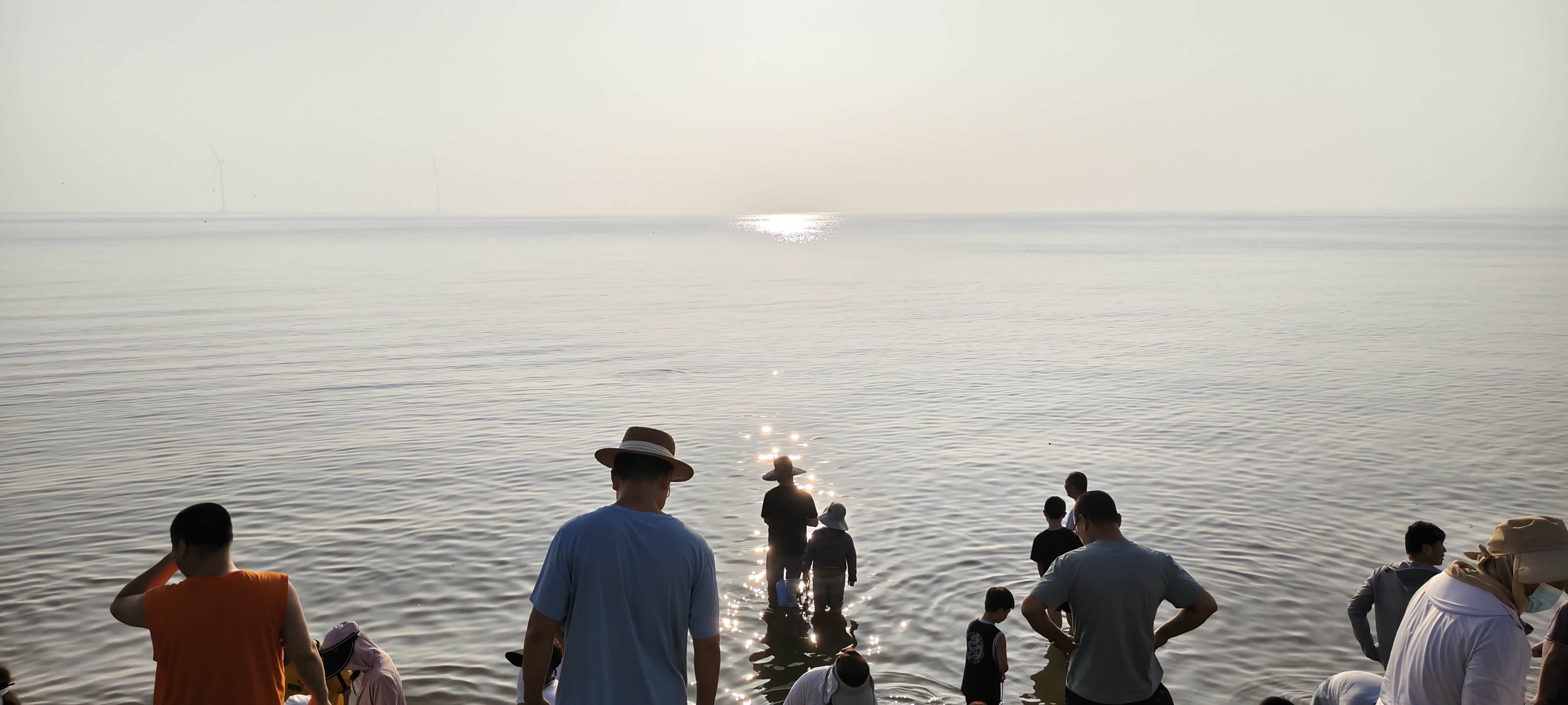 看完日出,我们回到停车地。插上外放电,开启小电热锅,煮了一锅热乎乎的泡面。吃完饭,我们带着提前准备好的小铲子、小水桶,来到东疆亲海公园的滩涂上。退潮后的海滩上满是惊喜。孩子们蹲在地上,小心翼翼地挖着,不一会儿,小水桶里就装满了各种小螃蟹、白蛤,个个鲜活饱满,看着就让人满心欢喜。