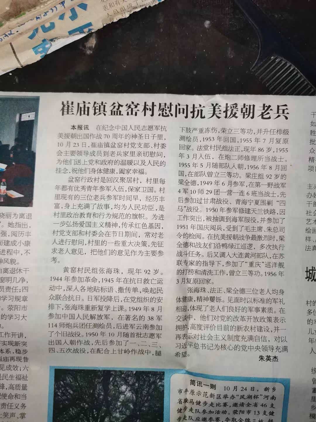 爷爷叫张海珠,1944年,十五岁就跟着皮定均领导的豫西抗日独立支队,他揣着油墨未干的传单,在日军炮楼的探照灯下贴“抗日救国”的标语。有次被巡逻队追得跳河,上岸后冻得嘴唇发紫,却先把湿透的传单铺在石头上晾干:“这些字比命还重要,能叫醒装睡的人。”日本投降后,他终于能安心读书,可没等课本捂热,1949年又成了38军114师炮兵团的测绘员。在云南参加了个旧战役,他背着测绘仪在瘴气弥漫的山林里穿梭,有次差点摔下悬崖,用牙咬住地图才腾出双手抓藤蔓。“测绘兵算错一毫米,前线的兄弟就得流血。”爷爷总把这话挂在嘴边。