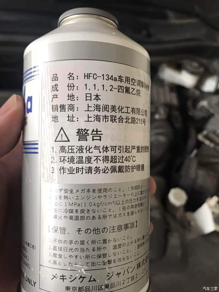 拿出日本原装进口制冷剂,加注过程严禁烟火