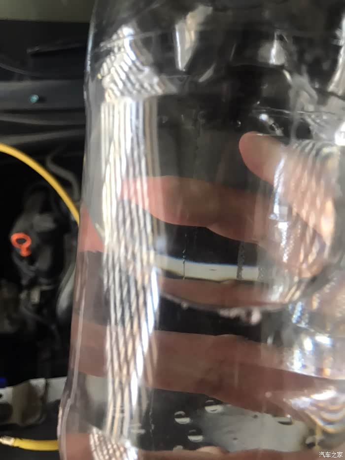 彻底释放原车制冷剂之后,缓冲水瓶里基本没有油花。