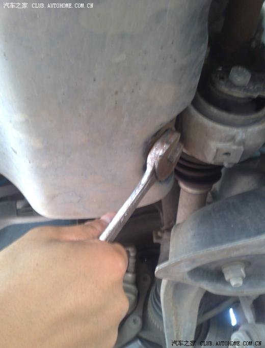螺丝拧下后 机油放出 同时放下千斤顶,让油放的干净些
