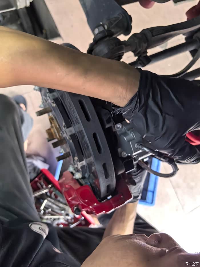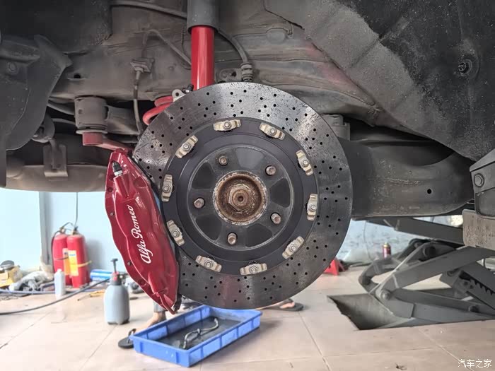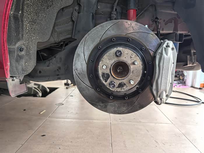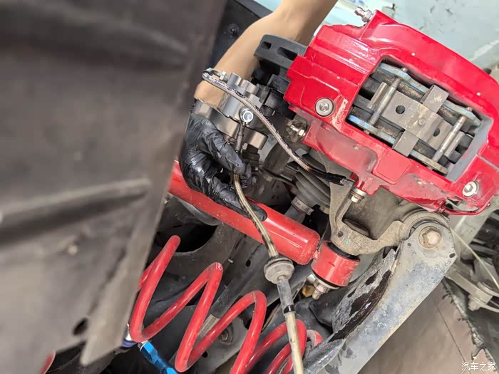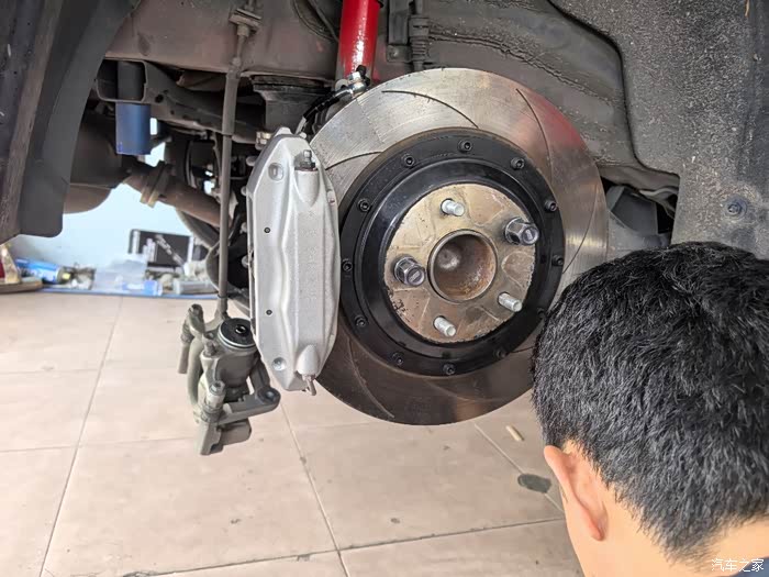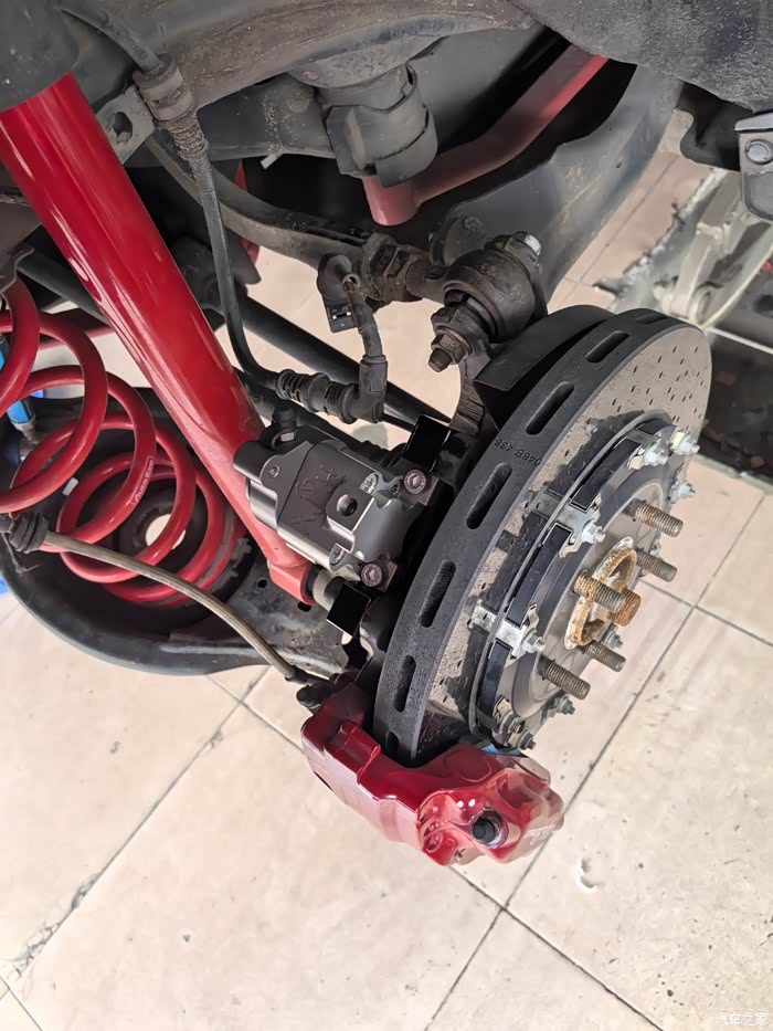 都是布雷博f40的四活塞卡钳,直接利用四活塞卡钳做驻车,不需要原车那个又丑又刹不住的单活塞卡钳了