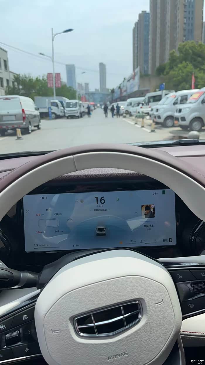 再来说说行驶感受,这台车开起来完全就是典型的欧洲车一般的调教,底盘还是偏硬朗,但是也不失舒适性,我觉得是个非常棒的调教。而且人性化的是这台车针对不同的群体设置了不同的驾驶模式,方向盘的转向力度也可以调节。我日常开就是智能模式,到了市区就是经济模式,提速升档非常积极,换挡平顺性还可以,但是细微感受低挡位换挡还是有一点顿挫的,但是已经比双离合好了很多,转向也是偏柔和,有一些虚位,。切换到运动模式,底盘一下子就变得更紧致的感觉,这个车就完全舍弃了舒适性让驾驶员专心驾驶,这种剧烈的颠簸会变成驾驶的信心,方向盘变得很沉,转向不再有虚位,指哪打哪,并线车身支撑非常到位,快速过弯让人很有信心。真的很难想象一个这么大的SUV居然还能有这么好的驾驶乐趣!再说说空间和内饰吧,这个一直是国产车的强项,吉利的高端旗舰车型更是不例外,手能摸到的地方基本都是皮质或者翻毛皮包裹,座椅填充很厚实,包裹性非常强!这个车因为有了这么大的轴距,空间表现在各个方面都十分出色,这个真的不必担心。