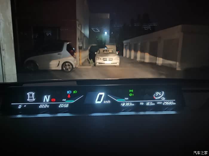 到目的地后续航383km,少了18km,小计里程18.5,里程续航比达到1比1
