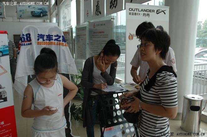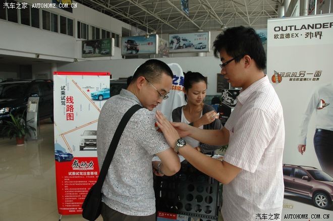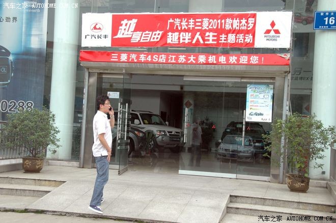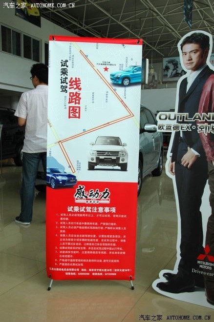 周末,天空还算不错,炎热天气过后的清爽格外让人舒适,汽车之家携手江苏大乘机电举办了进口三菱全系试驾活动。午后,带着一份热情踏上活动之旅,直奔目的地而去,到达活动地点后才发现不单我比较热情,网友的热情导致我到达前已经有一大堆人了。汽车之家的准备工作相当充分,旗帜,贴标随处可见,同时江苏大乘机电本次试驾活动的准备工作也相当细致,工作人员店内店外招呼车友,为车友提供了很多方便的服务。以下就以图文叙程的方式介绍本次活动的流程。