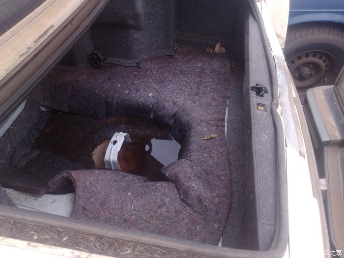 由于后备箱被打开关不上,存满积水。