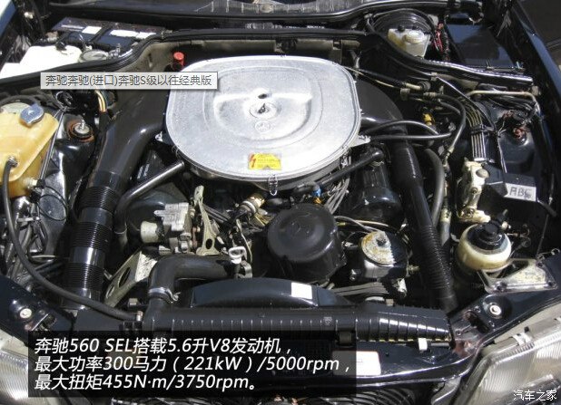 1985年,奔驰在法兰克福车展上推出了全新升级后的第六代S级轿车,改款S级系列中最引人注目的就是搭载5.6升八缸发动机的车型,输出功率可达272马力(200kW)。另外,还有高功率版发动机可供选择,最大功率300马力(221kW)/5000rpm,最大扭矩455N·m/3750rpm。虽然该款发动机并未整合闭环排放控制系统,但即使没有催化转换器,这款发动机仍能满足欧洲规定的排放标准,装配这款发动机的560 SEL和560 SEC最高时速可达250km/h,这也成为第六代奔驰S级动力最强劲的量产车型。