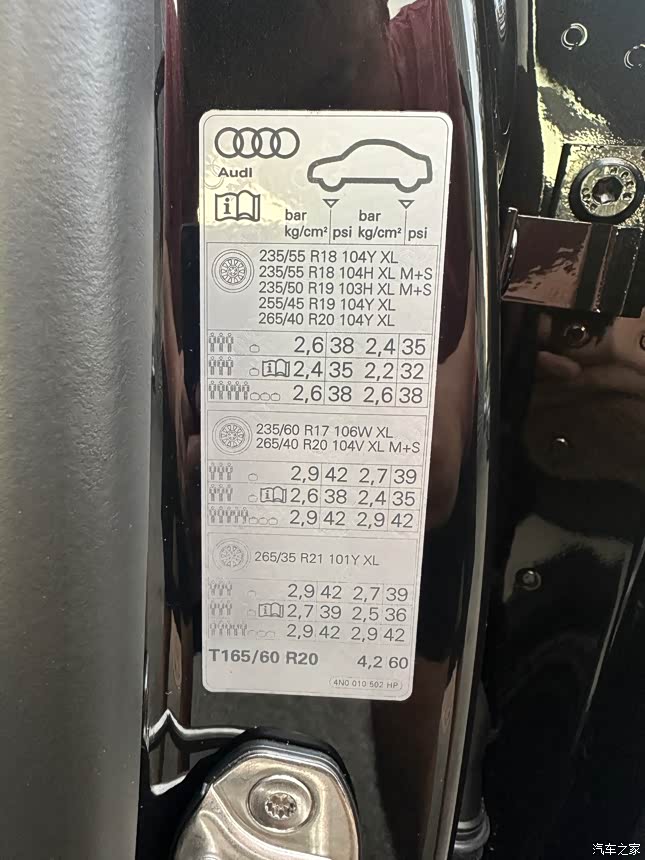 胎压建议的标牌