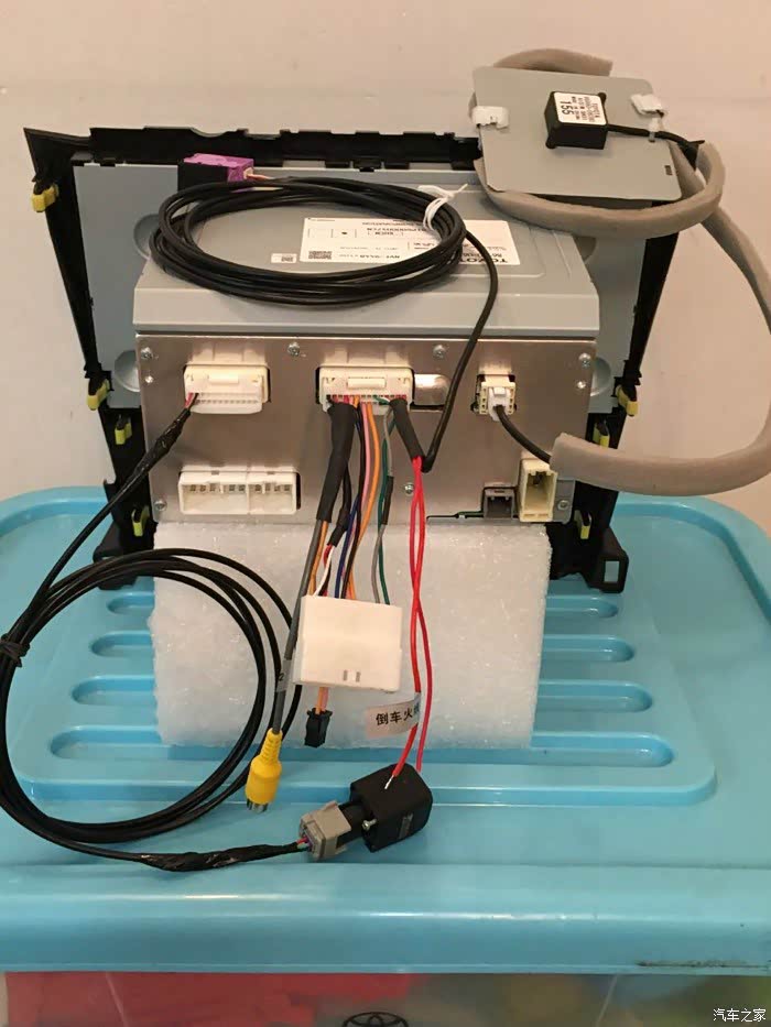 六. 因为我的坚持,在放倒车影像线束的时个多放了一条丰田4针的倒车信号线,因为我相信,我一定要把手上这个凯美瑞原装摄像头装上去的,只是现在功课还没有做到家…看看最后的安装后的效果图吧,立马感觉高大上了,测试了下MIC的效果,嗯,还不错,昨天是一家人在车上打电话给丈母娘过节问候的。。。
