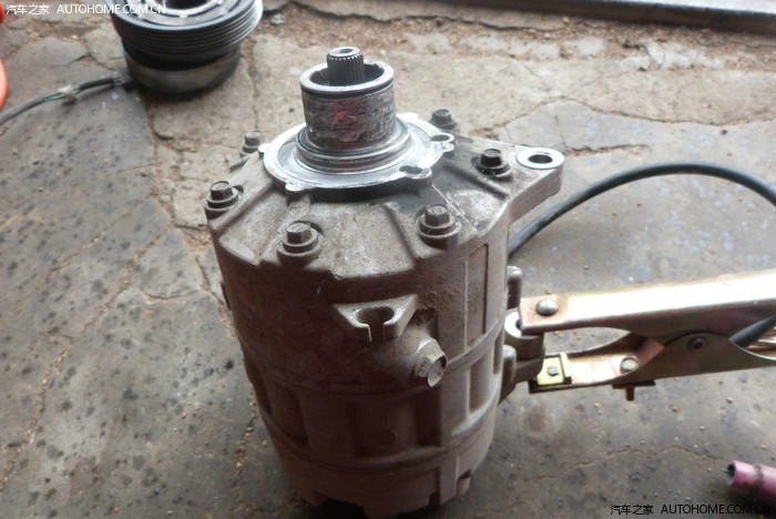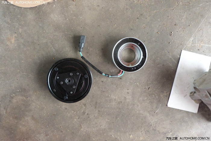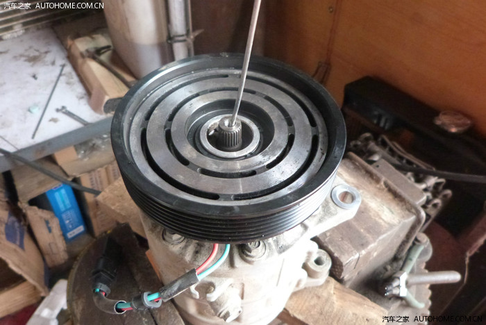 压缩机前段磨损,变细了。新买的离合器总成装上也大。