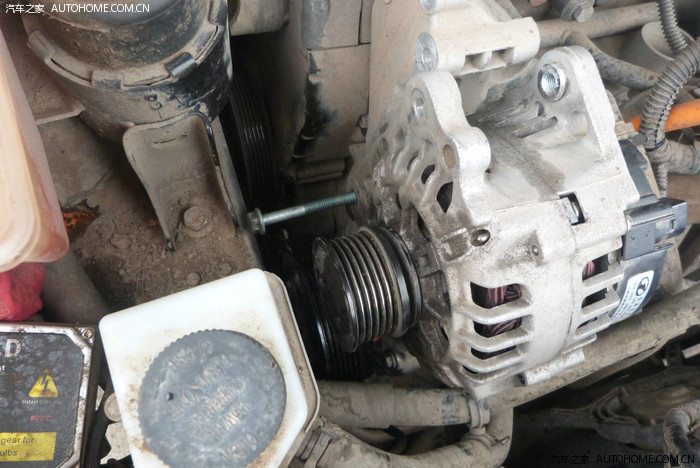 发电机这根螺丝拿不出来,只好松开发动机减震胶墩。