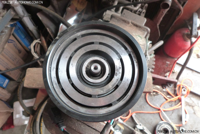 最近连续修了两台奔腾B50空调,症状都是头一天空调还好好的。第二天开空调就不好用了。客户把车开来以后,打开空调,只有扇热风扇电机工作,压缩机不吸合。检查电源接头还有12V电压,判断压缩机电磁线圈断路。拆开后发现是皮带轮轴承内环跟压缩机前端磨损造成松旷,皮带盘摩擦电磁线圈。导致电磁线圈过热烧毁。