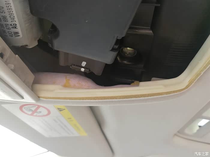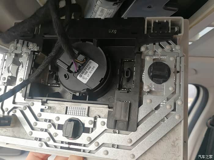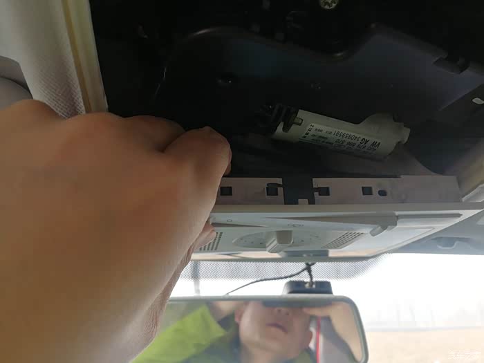 这是要更换的前阅读灯位置。很多车友直接撬动带阅读灯位置的面板,而我打算从阅读灯后面那块装饰面板开始拆卸。(先拆卸后面装饰面板,虽然多拆了一块面板,更更容易拆卸。)