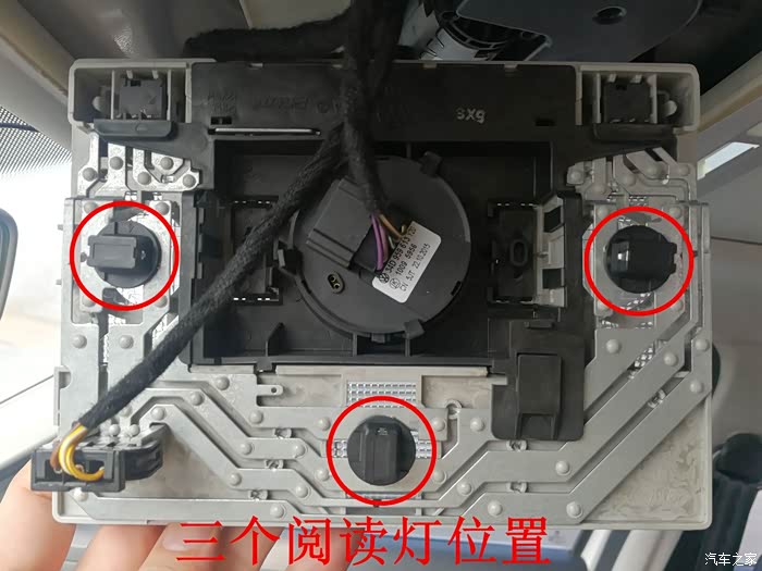 拆掉三个阅读灯后的阅读灯面板背面。