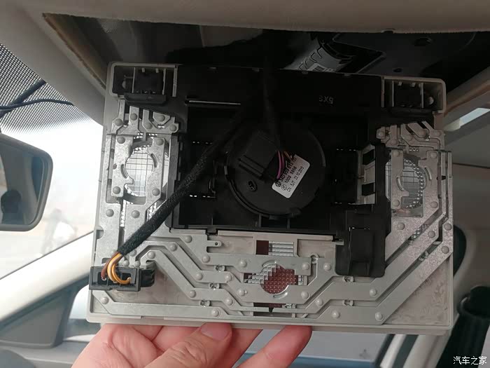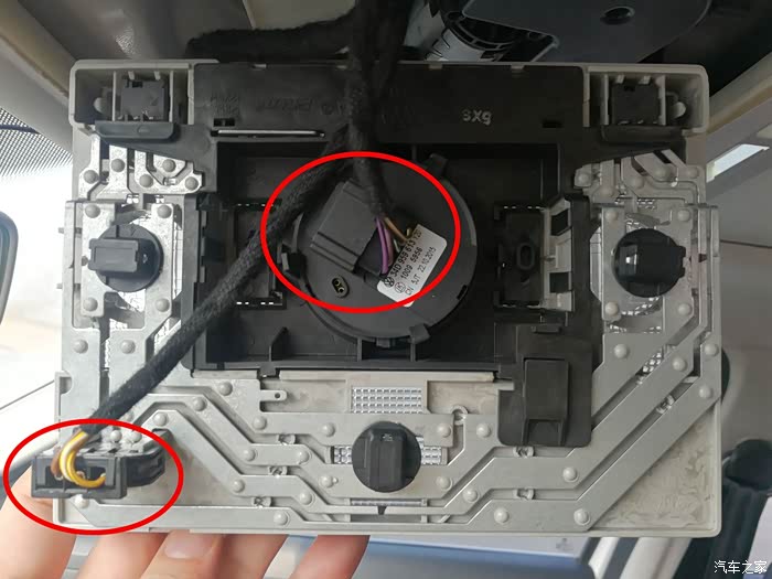 阅读灯面板背部有两个电源线,最外侧是阅读灯电源线。中间位置是控制天窗的电源线。