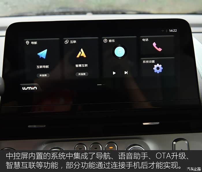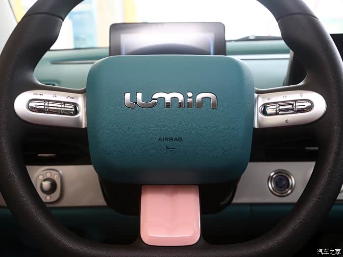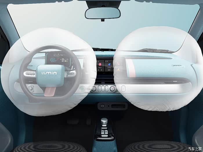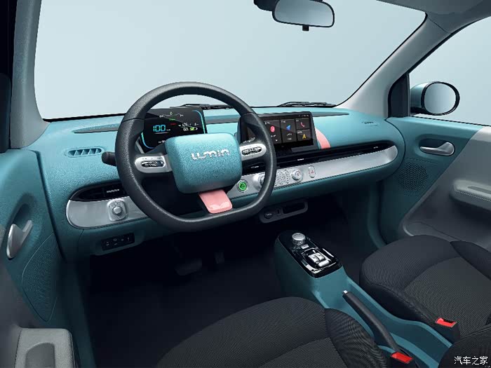 内饰部分,长安LUMIN的内饰风格很简约,作为一款小型车,新车的内饰显得也有些小巧,它的中控台上有两块悬浮式的大屏幕。