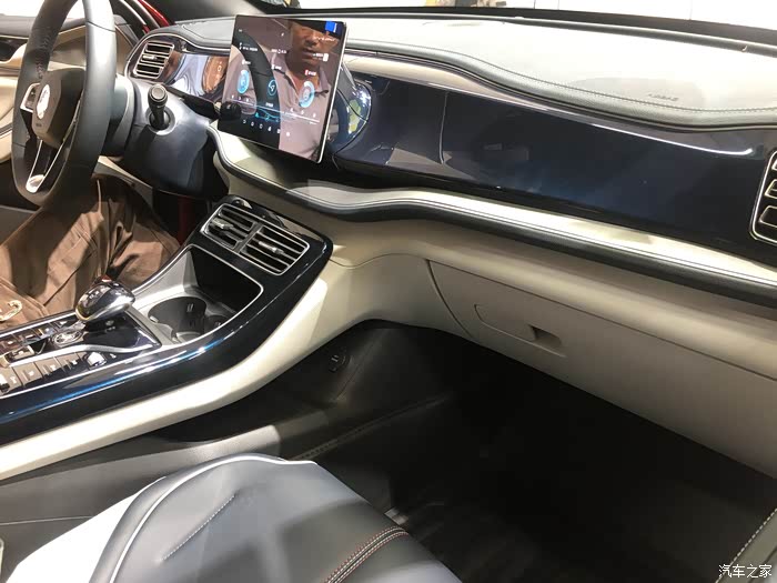 看一下前排的驾驶位,内饰的搭配颜色,整体蓝色配米色,有着科技和温馨的感受。