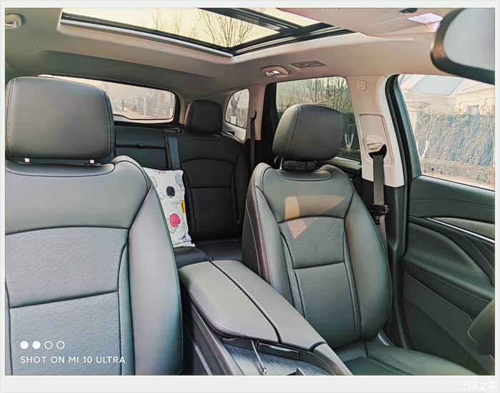 5:内部空间,本人1米八五的身高,前后排空间充裕,第二排座椅坐垫略短,但可以接受,第三排女士儿童坐无压力,身材高大的男士应急坐尚可,第三排座椅坐垫高度较高,不会有坐小板凳的感觉,全景天窗十分敞亮,储物空间也很灵活多样,二三排座椅的电动收放也为提高利用率和便捷性提供了有力的保障,女士也不用担心了。