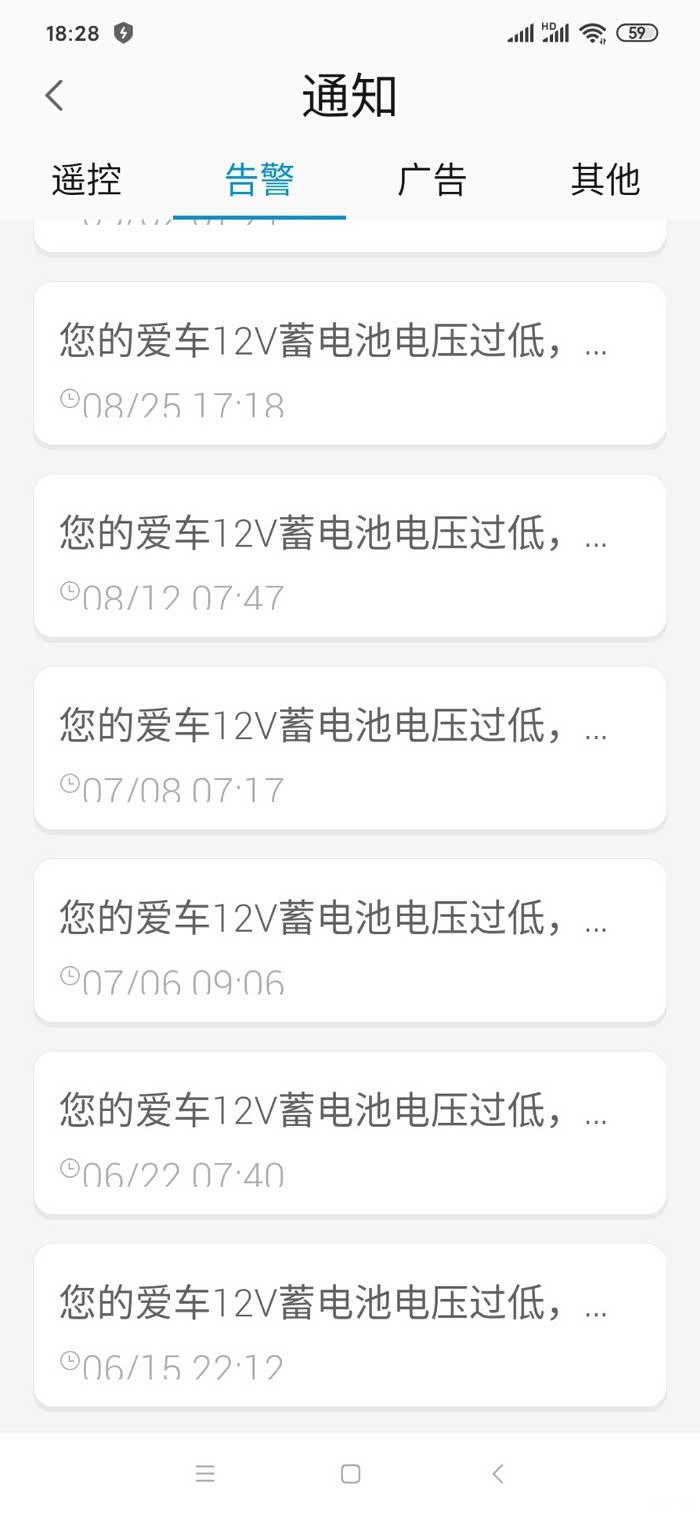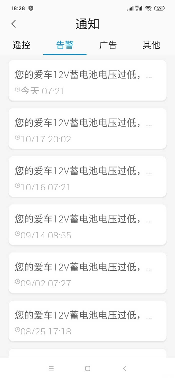 自从2018年11月份提车回来,手机APP软件每周电瓶电压过低报警提示至少2次以上,现在是每个月至少报警提示2次以上,也不清楚是哪里的原因,去4s做过检测也查不出来问题在哪里。不管你是刚跑完车回来还是停在楼下,不定时提示您的爱车电瓶电压过低请及时补充电量。