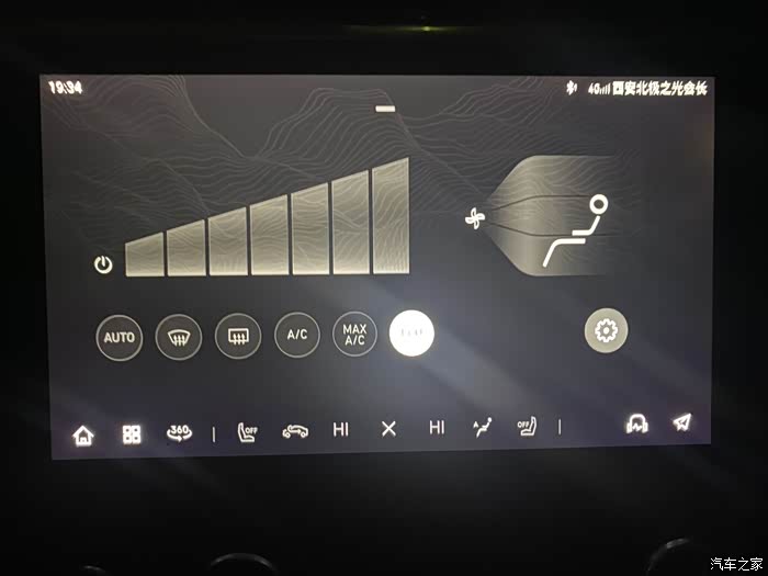 亮点三:①空调界面设计更加人性化,按钮变大,风量的大小很直观就能看到,交互很棒。